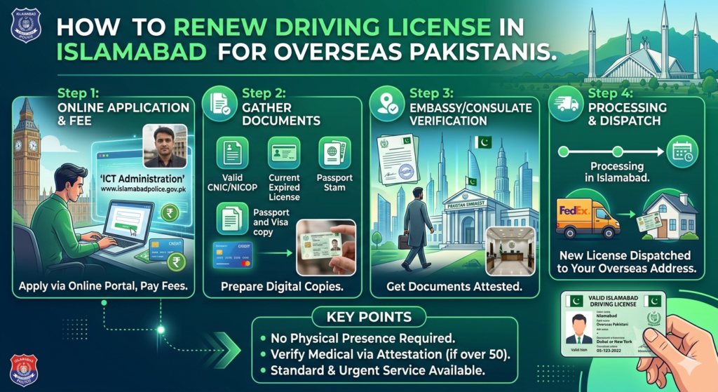 The process for renewing a driving license in Islamabad, Pakistan may involve several steps. Please note that the process may change over time, so it’s essential to check with the relevant authorities for the most up-to-date information. Here is a Read More …