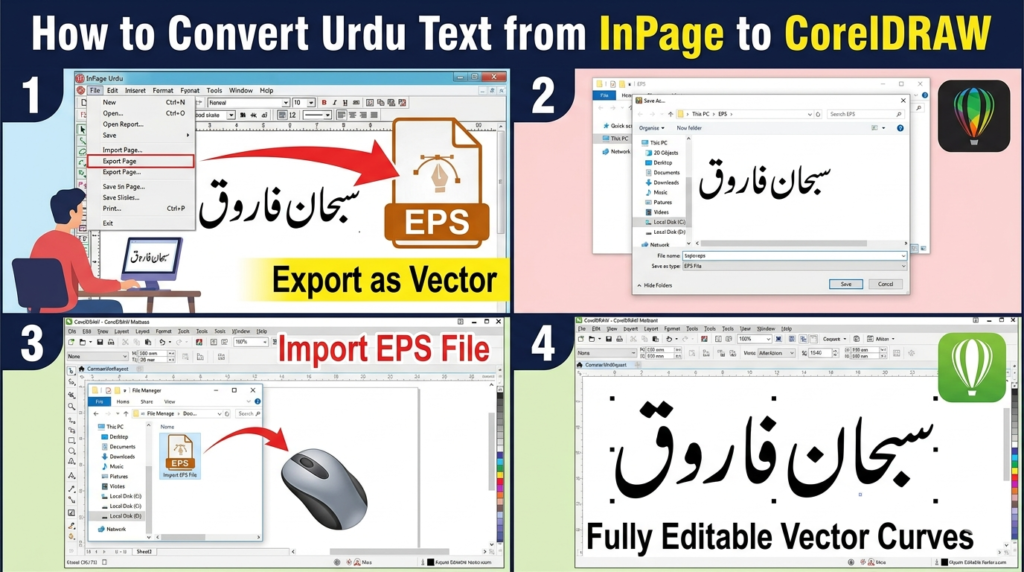 Converting Urdu text from InPage to CorelDRAW can be a multi-step process because InPage is a word processing software for languages like Urdu, while CorelDRAW is a vector graphics design software. Here’s a general outline of the process: Remember that Read More …